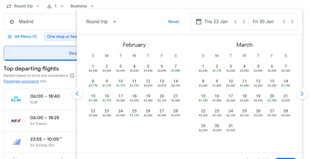 We found this fabulous business class suite from Madrid, Spain to Rio de Janeiro, Brazil for €1,690, round trip on Air France/KLM Airlines. This fare is available from January to March 2026. Sample flight: